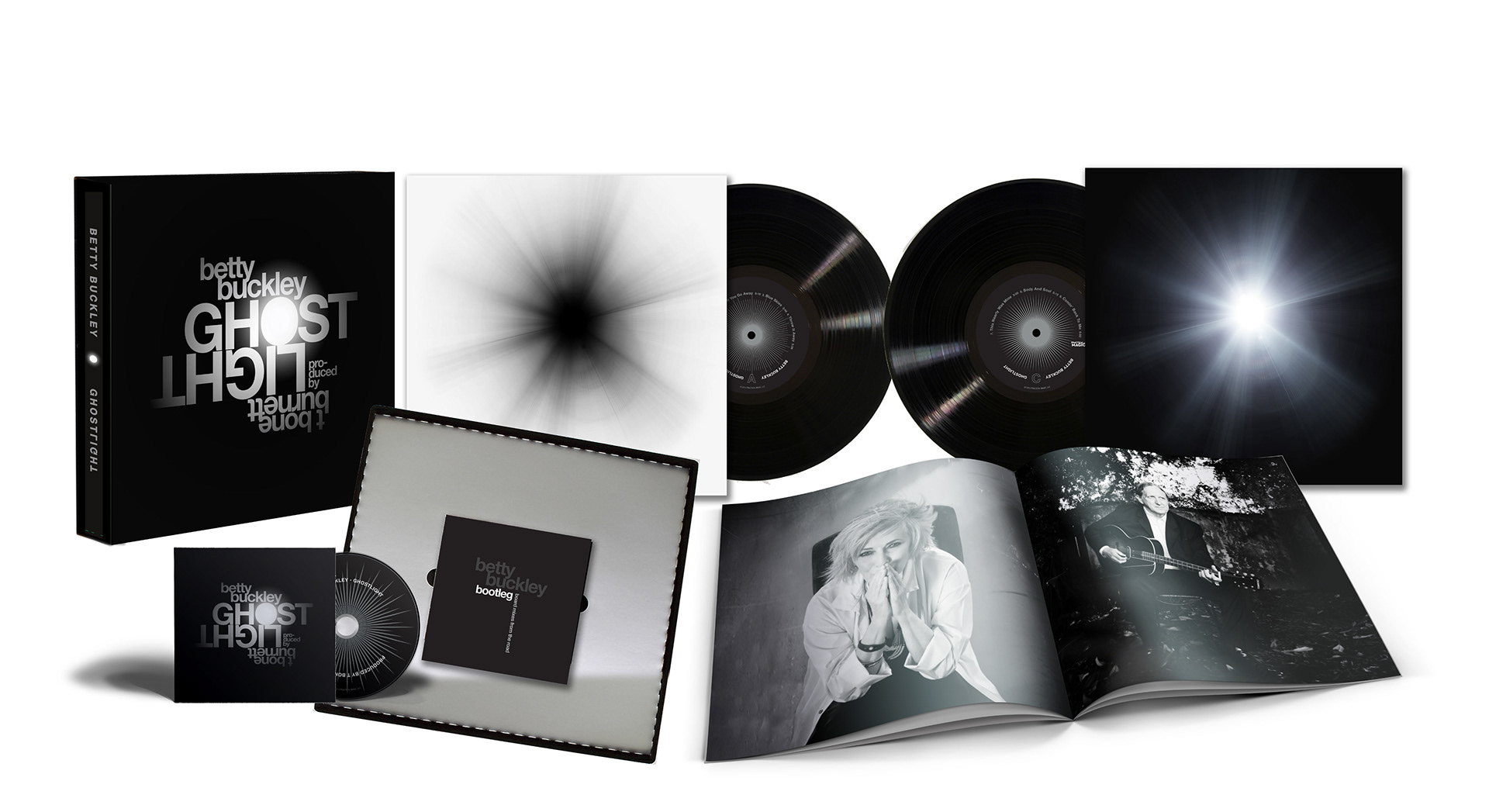 Album packaging for GHOSTLIGHT, a collaboration between singer Betty Buckley and producer T Bone Burnett. They attended high school together in Texas.
